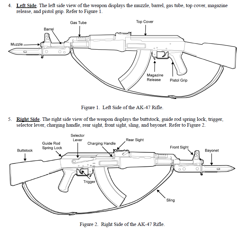 - Operator's Manual for the AK-47 (Dept of Army Mil. Intel.) 1st Ver. 42 pg.