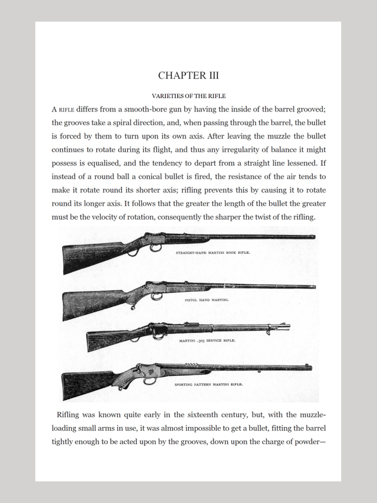 Written in 1900, by renown british gunmaker W.W. Greener, this classic text on shooting sports and technique is a must read for any marksmanship enthusiast. His foresight on the eve of the First Great War in seeing the need for a larger percentage of the populace to know the art and skills of the rifle, for the good of the empire, was the motivation behind this work.